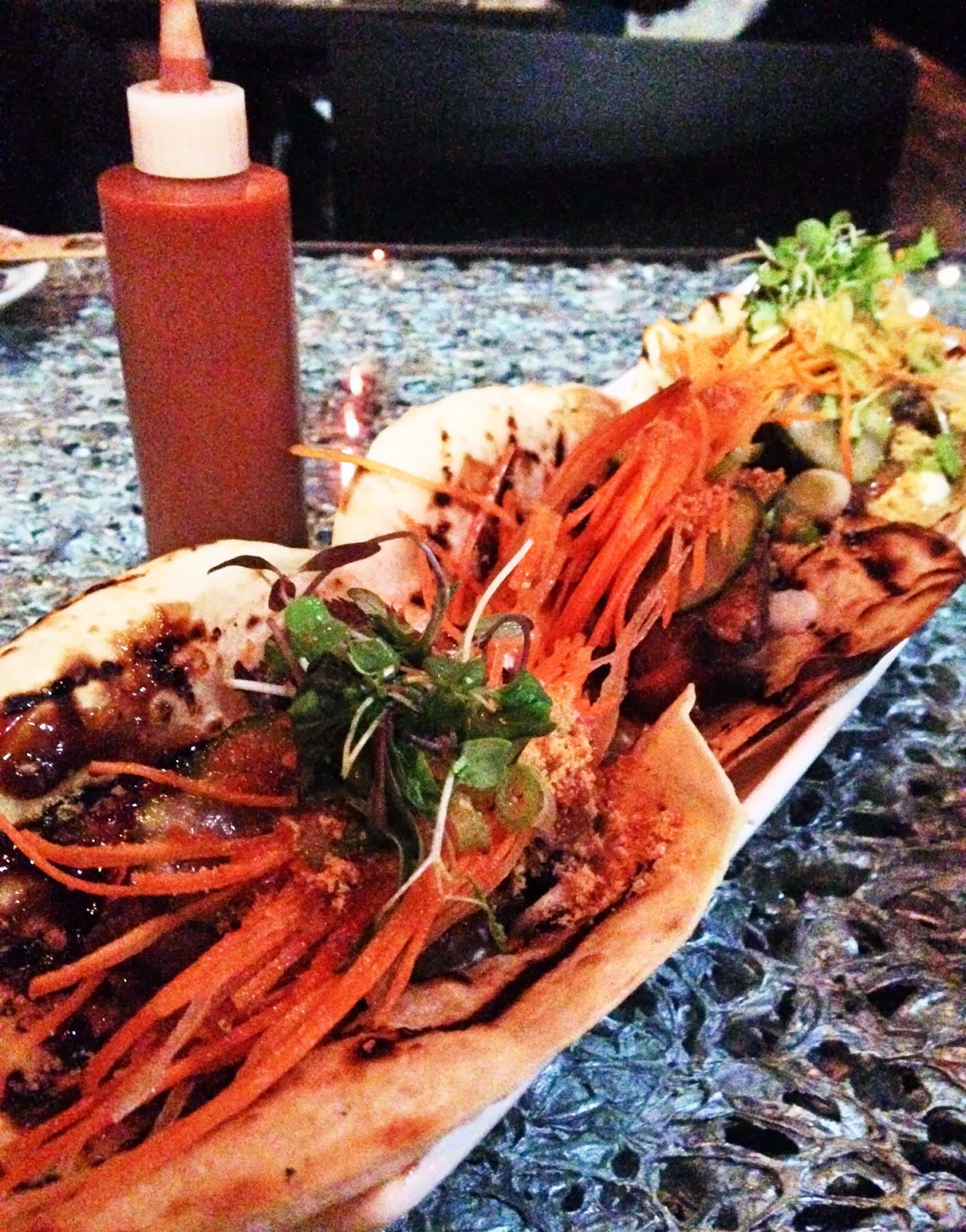 So after feeling pretty satisfied we couldn’t leave without having the Chinois Duck + flour tortilla + cucumber + hoisin + sour cream + sriracha (right???)